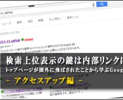 思えばアフィリエイトJAPANの人気記事ランキングに入っている記事は常に内部リンクを得ているので、いつも検索上位にいます。サイドバーにリンクを張っていれば、全記事から内部リンクを得ていることになりますし。ホント、大きな謎が解けた気がします。